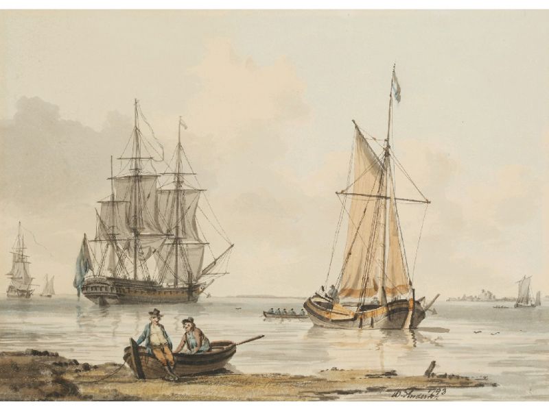 A Dutch fishing port in a calm