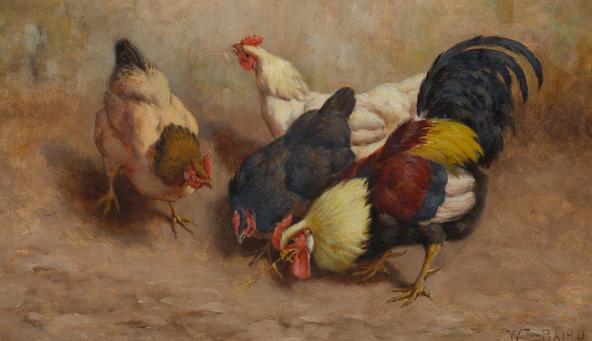 CHICKENS IN A FARMYARD