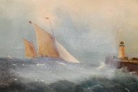 Coastal scene with stormy seas and lighthouse