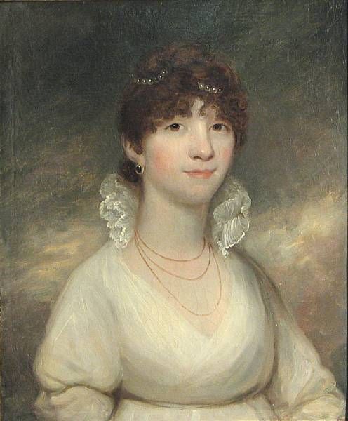 A portrait of a lady in a white dress, said to be Lady Stanhope
