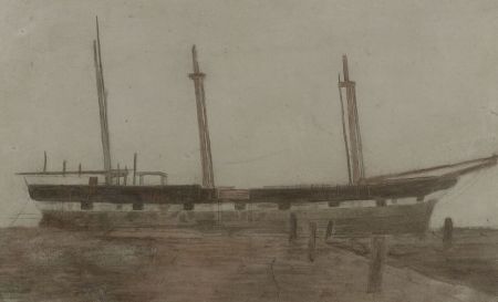 Graphic with wash and tobacco juice on paper/board