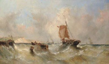 | Hauling in the catch in a heavy swell off Dover, with busy Channel traffic beyond | |