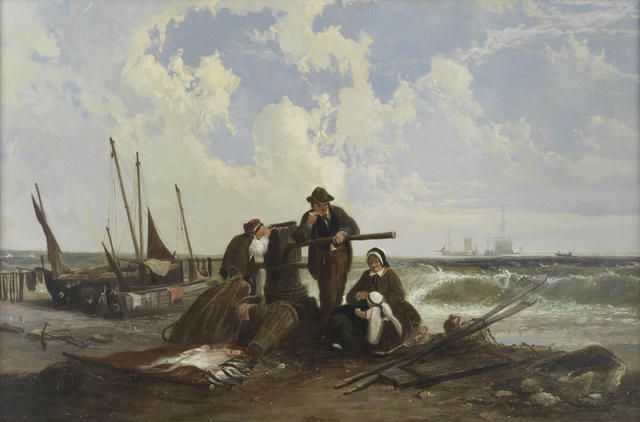 Fisherfolk on the shore