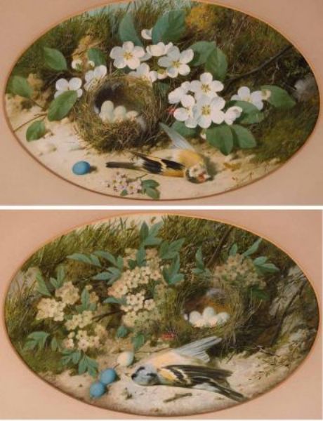 Still Life Studies of Flowers, Birds Nest and Dead Birds on a Bank,