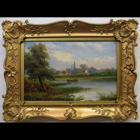 FIGURES BOATING NEAR THE VILLAGE