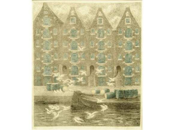 | Mouettes sur un canal à Amsterdam. Vers 1900 | |
