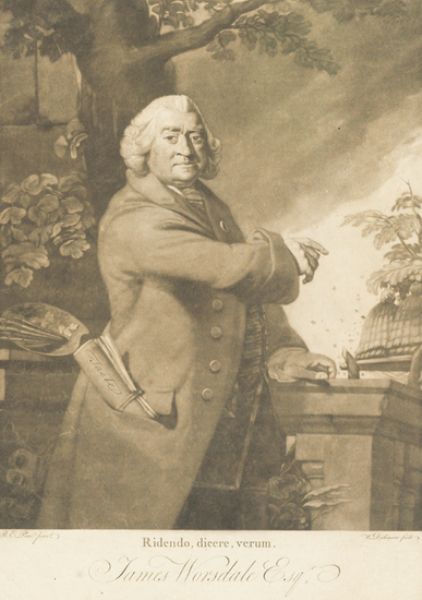 | James Worsdale, Ridendo, dicere, verum, three quarter-length portrait, after R.E. Pine, leaning on a wall that supports a palett | |