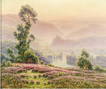 Paysage limousin, bruyères en fleurs le matin