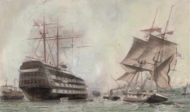 | H.M.S. Victory lying on her permanent mooring in Portsmouth harbour | |