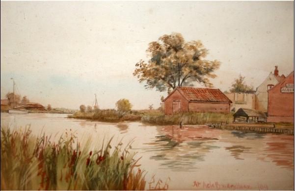 Village Scene with Horse and Cart and “At Acle Bridge House