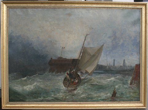 Large 19th century Maritime Scene of the Stormy Cornish Coast