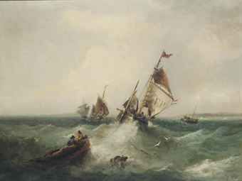 | Fishing trawlers in a heavy swell off the Isle of Man | |