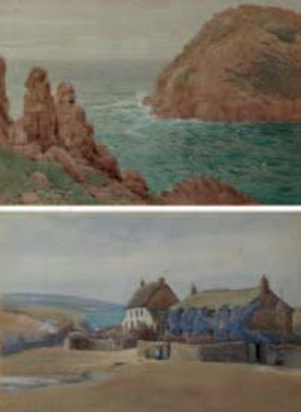 A farm along the Cornish coast; A coastal view