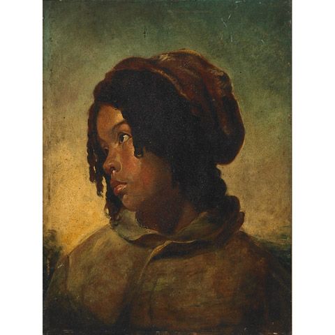 | YOUNG NEGRESS (BUST LENGTH, WEARING A TURBANED HAT AND A COLLARED COAT IN A LANDSCAPE) | |