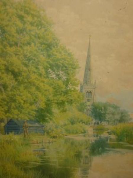 | Fen Scene with Church Spire and Fisherman in the Foreground | |