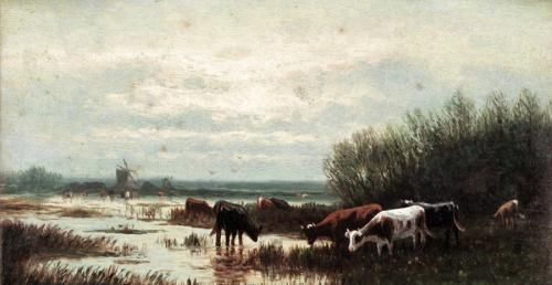 CATTLE WATERING; CATTLE WITH WINDMILL