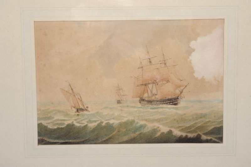 Warship and fishing boat in a swell