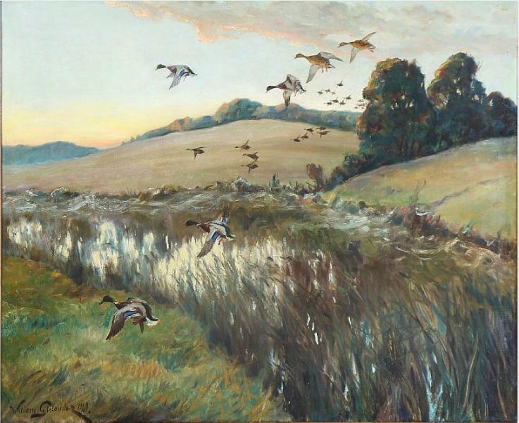 Landscape with flying ducks