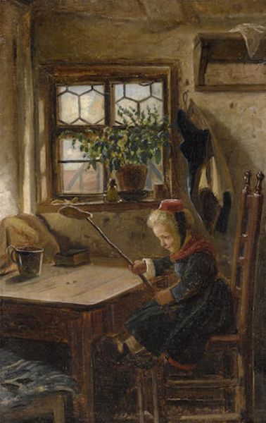 Little peasant girl swatting flies