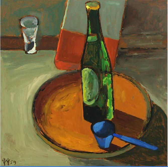 Still life with tray and bottle