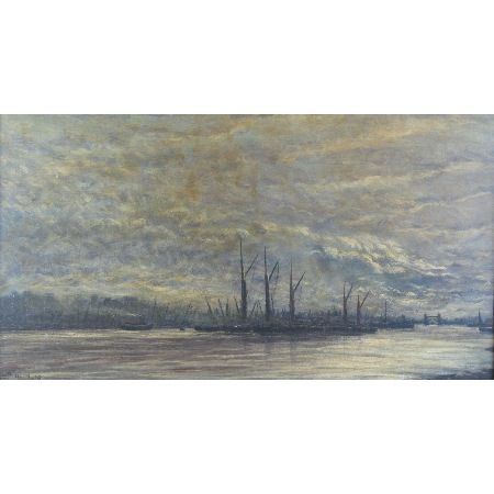 evening scene with shipping on the River Thames, Tower Bridge in the distance
