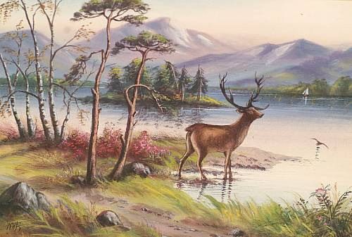 Stag before a loch landscape