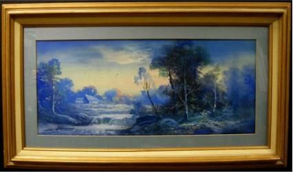 LANDSCAPE IN BLUE WITH COTTAGE