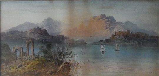 Sailing boats in a calm Mediterranean coastal scene with island fortress