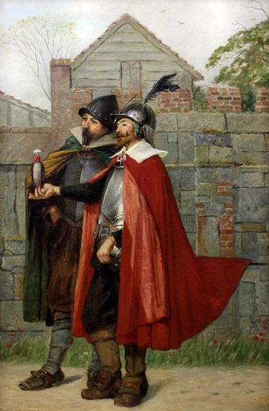 Two Cromwellian soldiers, one holding a peregrine falcon