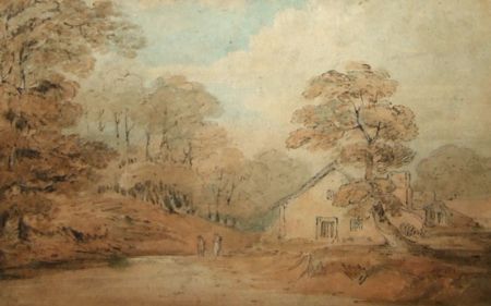 River Landscape with Figures by a Cottage