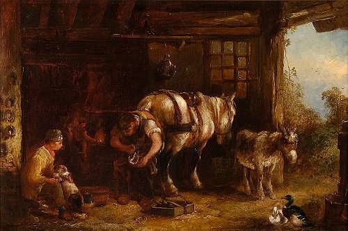 Horse and donkey in the forge
