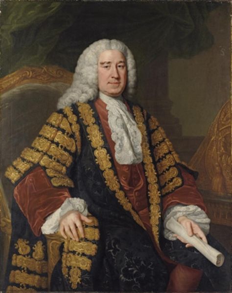 | Portrait of Henry Pelham (1694-1754), three-quarter-length, seated in Chancellor's robes, a scroll in his left hand | |