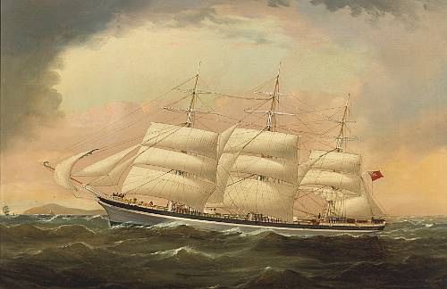 A fully-rigged ship possibly off the South Stack Lighthouse, Anglesey