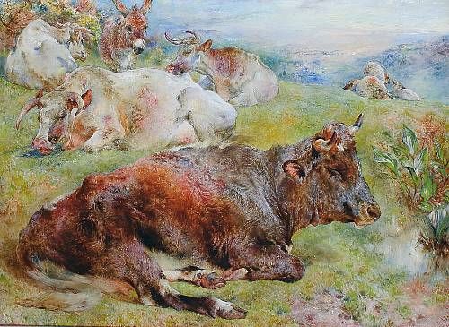 Cows and Donkey in a landscape