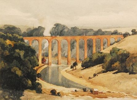 A view of a viaduct spanning a river valley