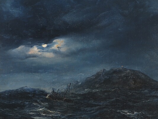 “Old Chiswick Church” and ships wreck at night