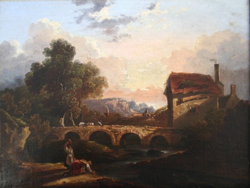 | COUNTRY LANDSCAPE WITH FIGURES FETCHING WATER NEAR A BRIDGE | |