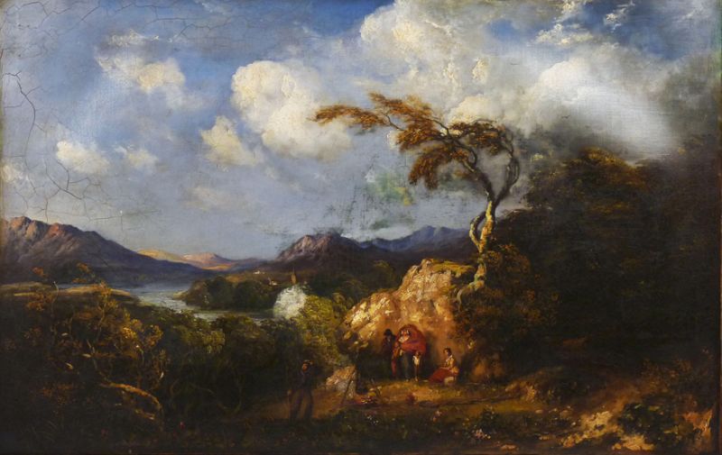 A GYPSY ENCAMPMENT IN A WOODED LANDSCAPE