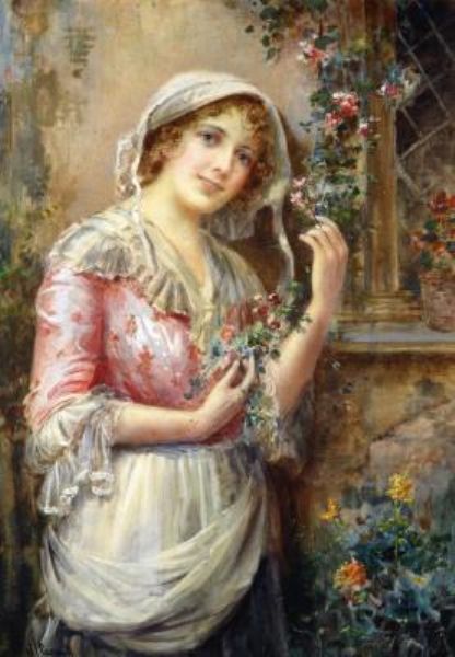 Portrait of a Young Woman by a Cottage Window