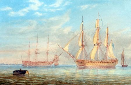 HMS Queen Coming to Anchor in Spithead with other Royal Naval Warships from the Fleet