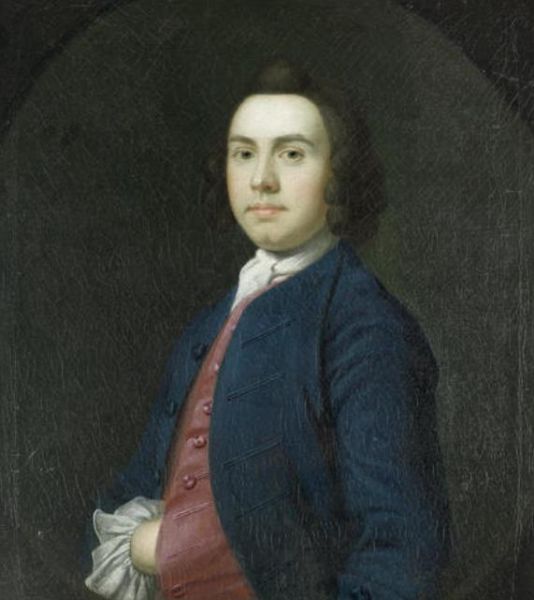| Portrait of a gentleman, half-length, in a blue coat and red waistcoat, within a painted oval | |