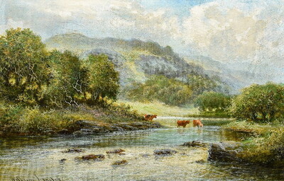 Cattle Watering in a Highland Landscape
