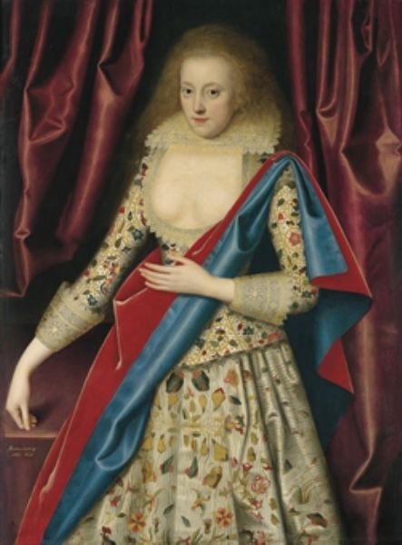 | Portrait of lady, probably Lady Thornhagh, three-quarter-length, in an embroidered bodice and an embroidered dress, with a pale | |
