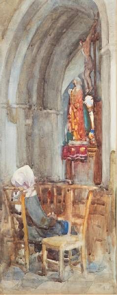 Woman in a church interior