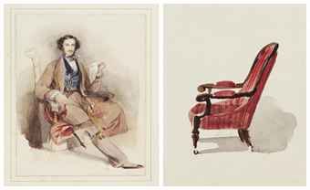 Portrait of a gentleman, seated full-length in a red smoking jacket; together with a Study of a chair