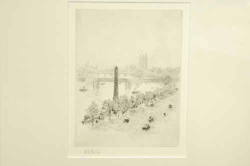 Cleopatra's Needle, Charing Cross Bridge and Westminster from the Savoy Hotel