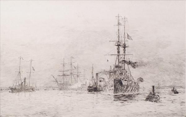 | HMS Natal passing the Victory in Portsmouth Harbour | |