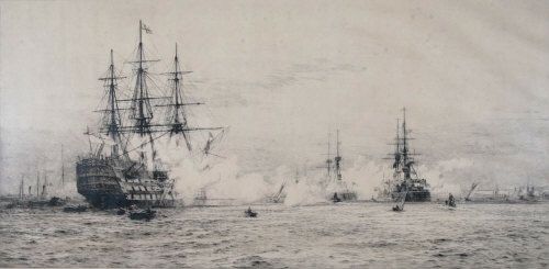 HMS VICTORY FIRING A SALUTE IN PORTSMOUTH HARBOUR
