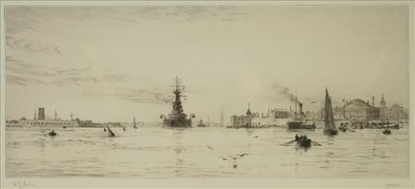 Portsmouth Harbour showing HMS Revenge Flag-ship