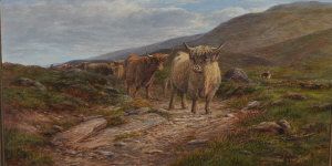 Highland cattle and drover